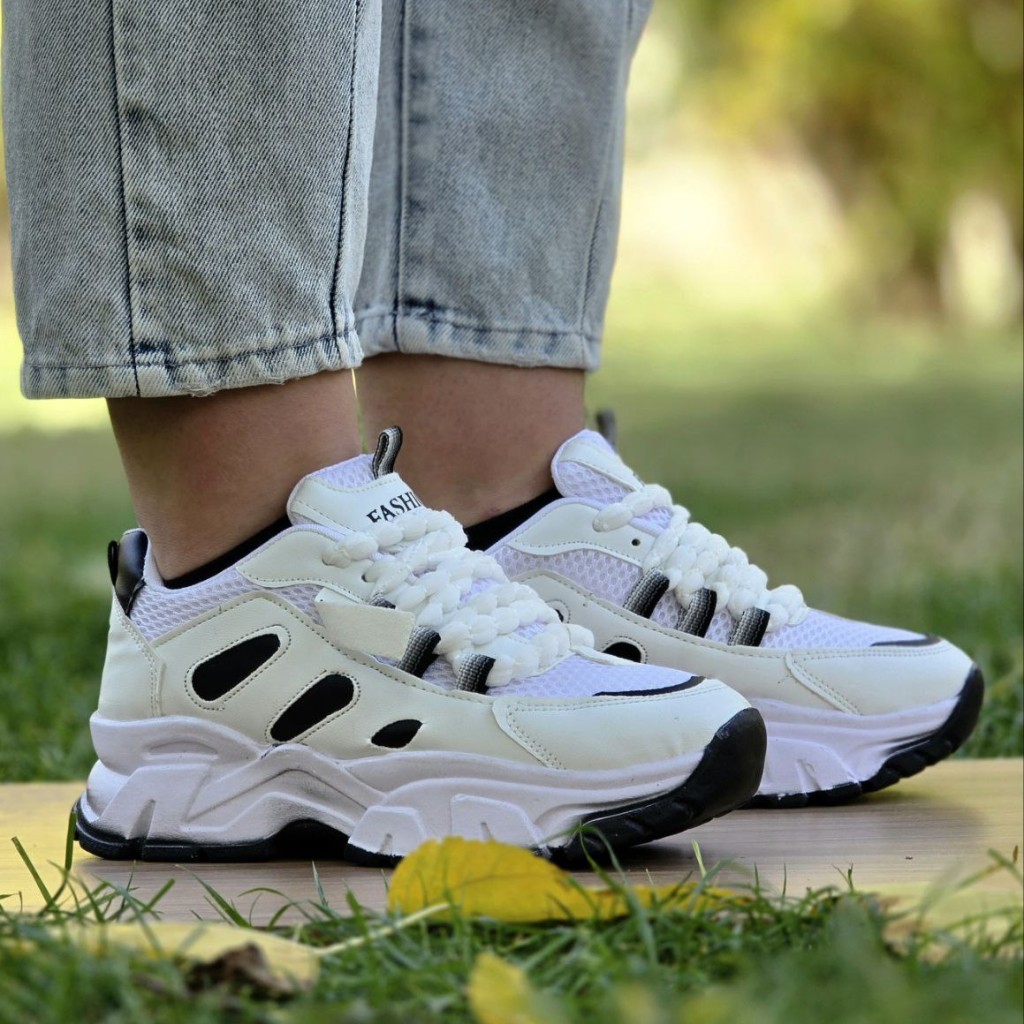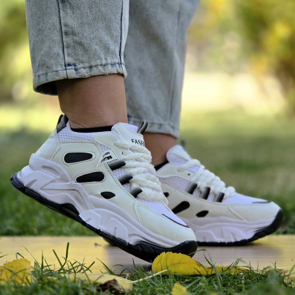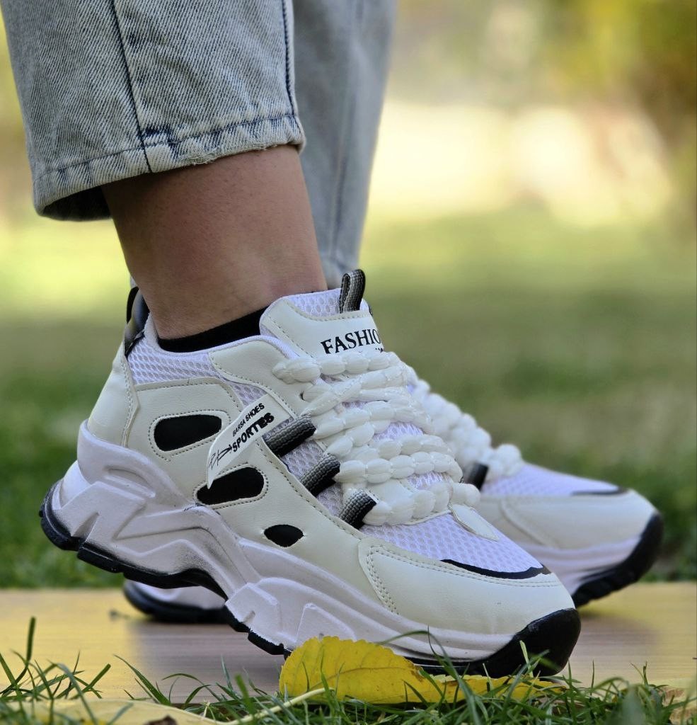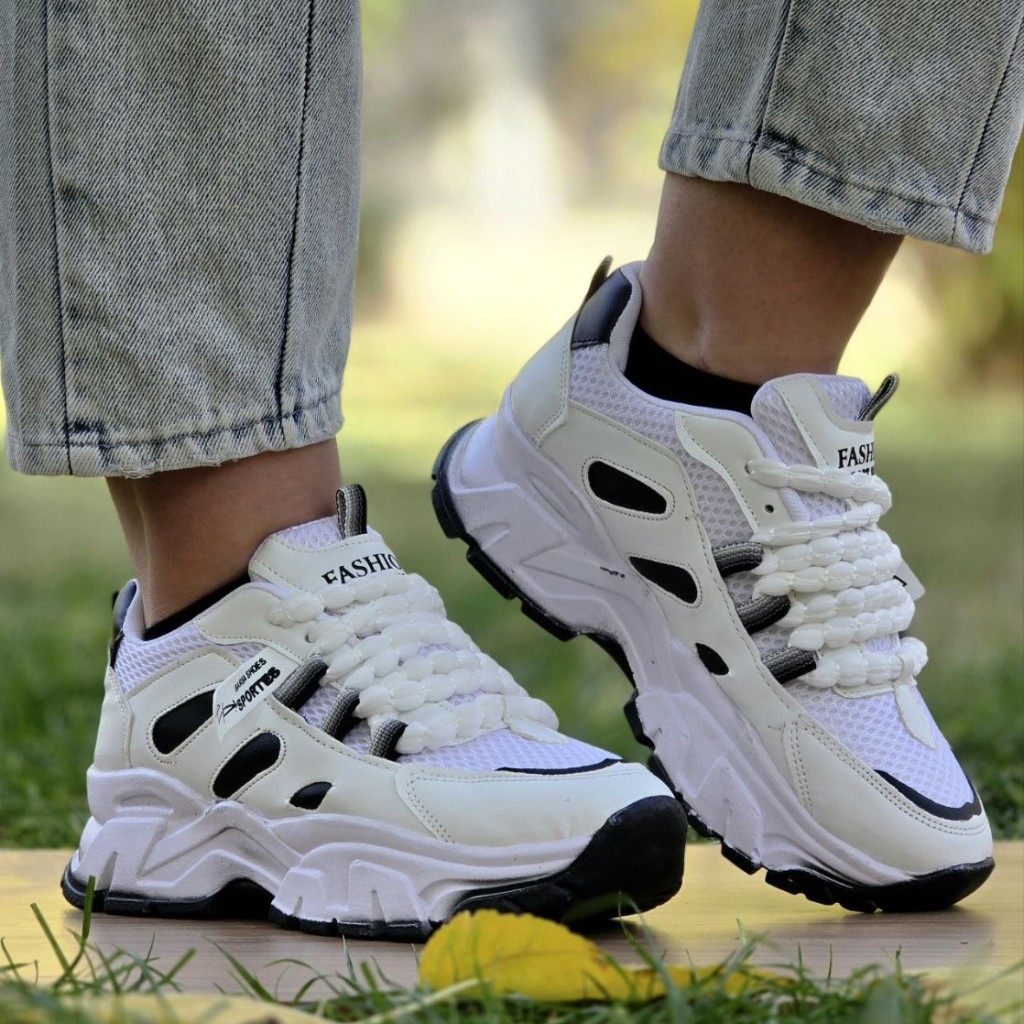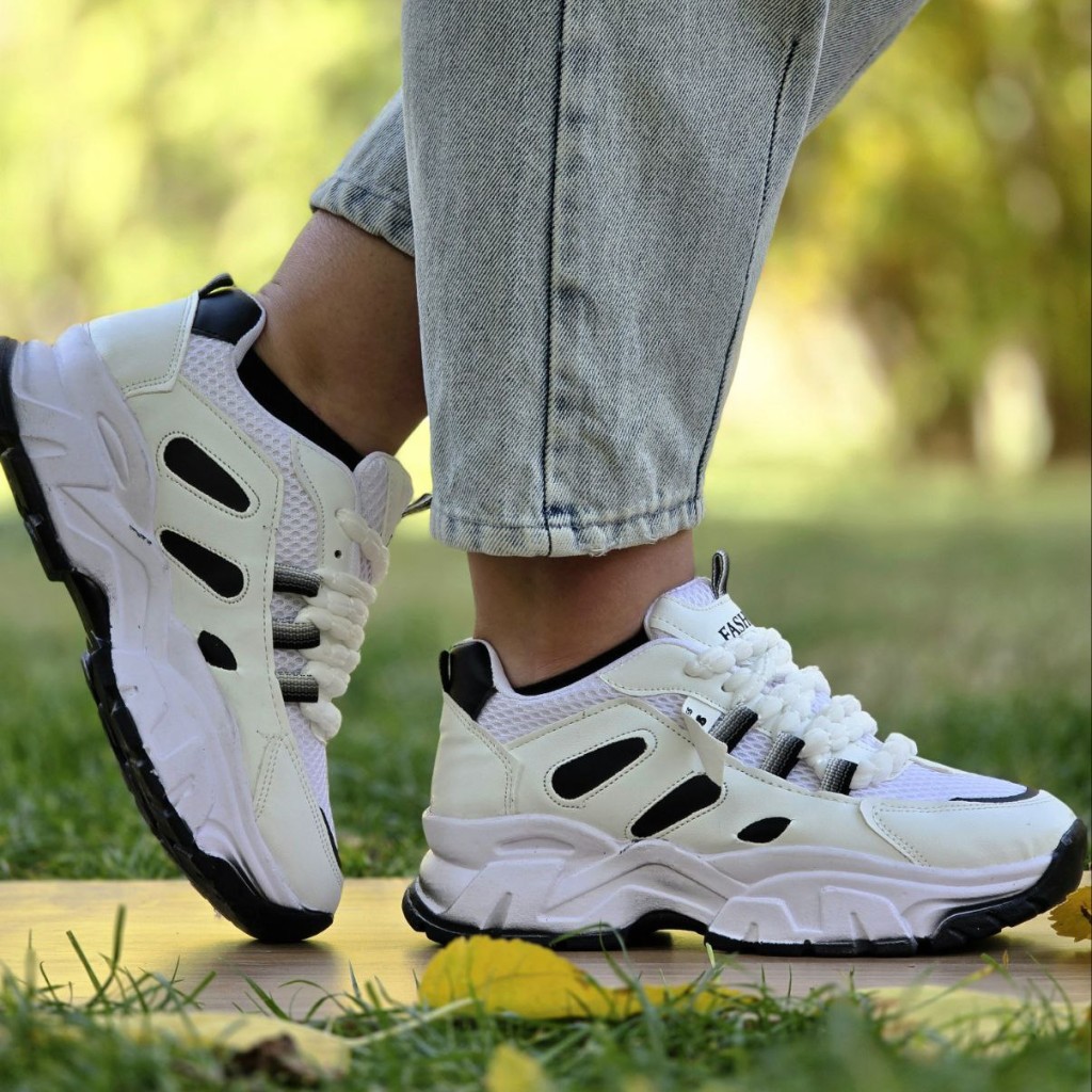 فروش عالی کفش اسپرت زنانه مدل فشیون تسبیحی جذاب و دلبر رنگ سفید مشکی باارسال رایگان
