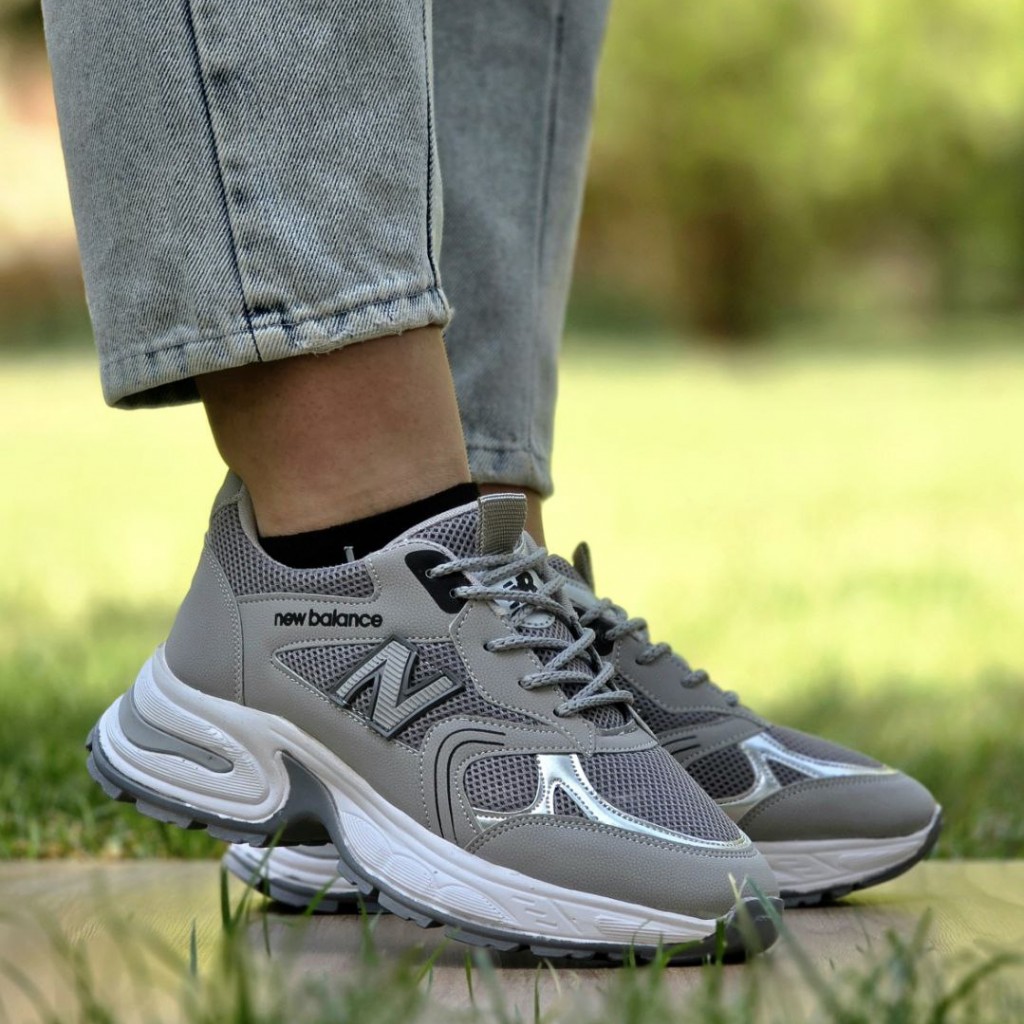 فروش بی نظیر کفش اسپرت دخترانه زنانه مدل نیوبالانس جذاب و خاص رنگ طوسی نقره ای با ارسال رایگان