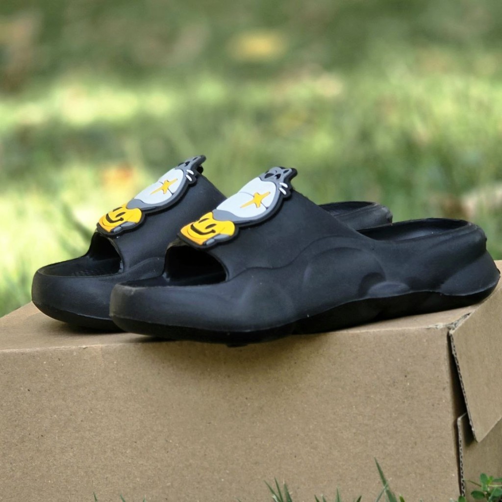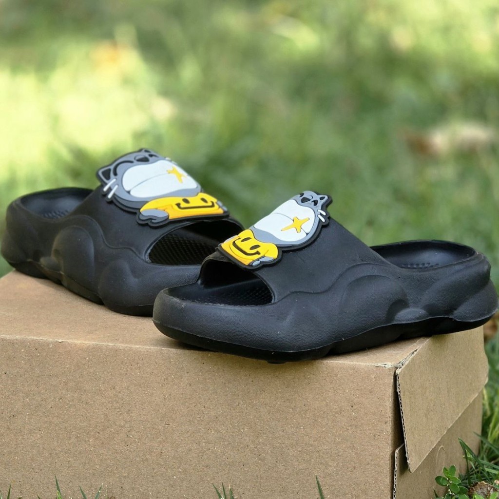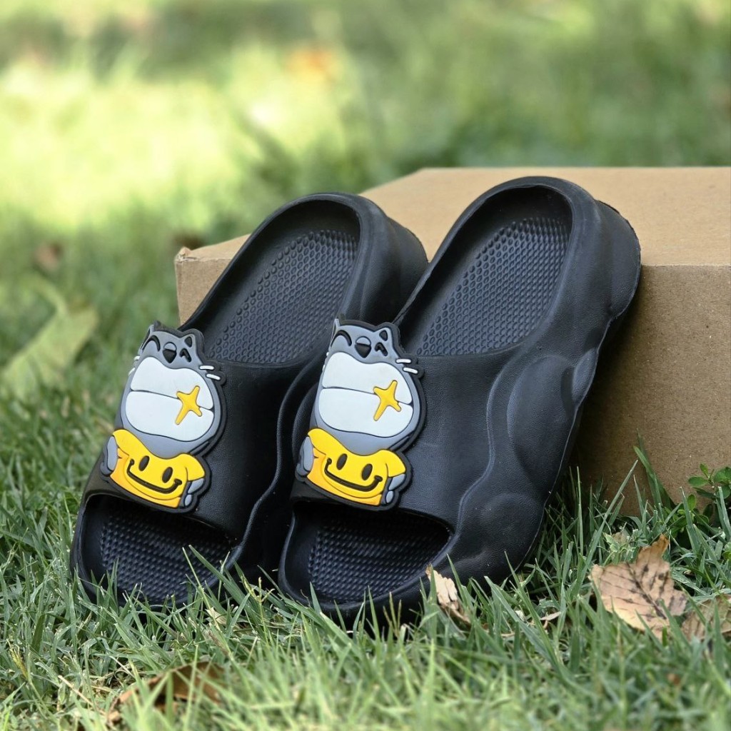 تخفیف باورنکردنی دمپایی صندل بچگانه کرومی عروسکی دخترانه پسرانه بامزه و راحت رنگ مشکی با ارسال رایگان