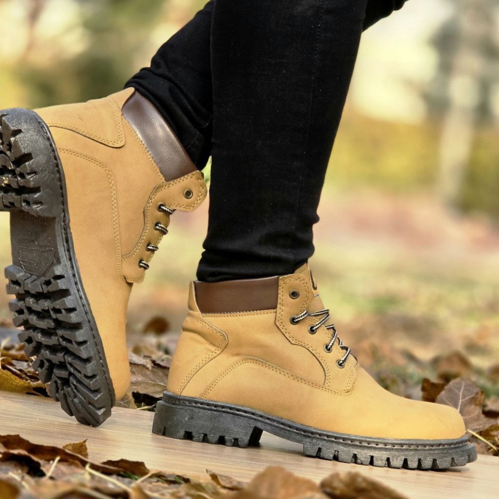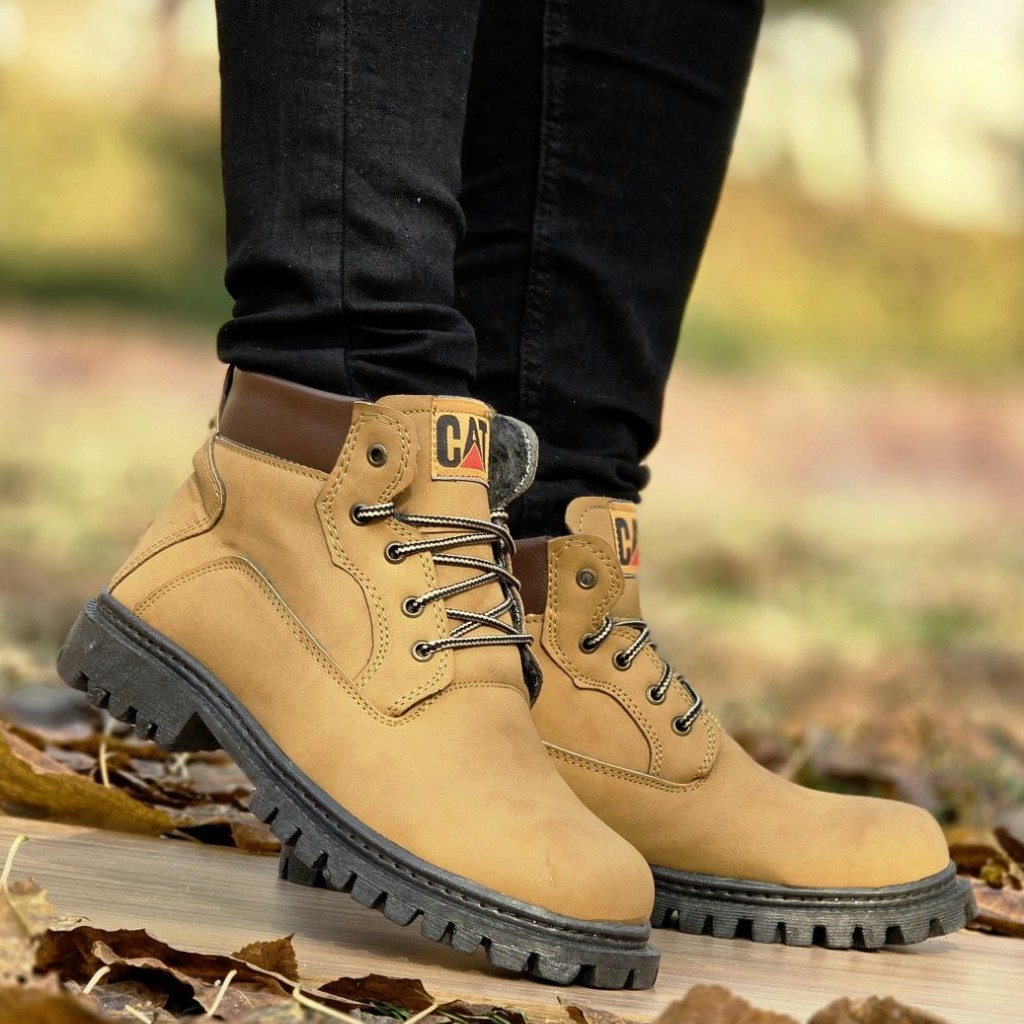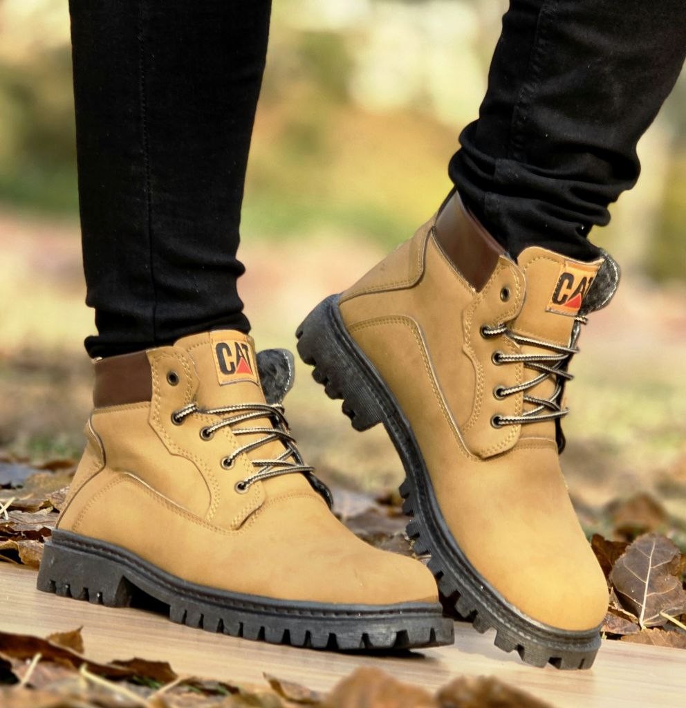 حراج باکیفیت نیم بوت مردانه پسرانه مدل کت CAT مقاوم و بادوام رنگ خردلی با ارسال رایگان