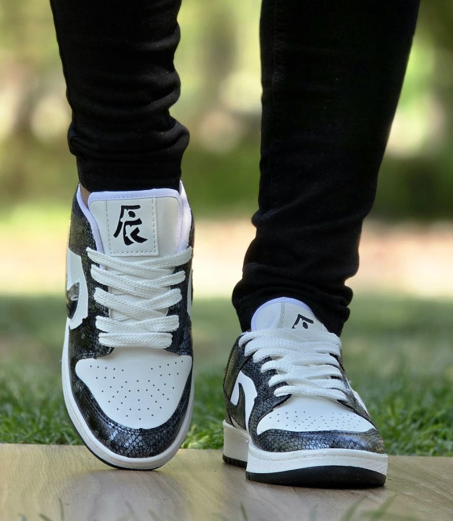 حرااج فوق العاده عاالی کفش کتونی اسپرت نایک دراگون زنانه و مردانه ساده و لوکس رنگ مشکی سفید با ارسال رایگان