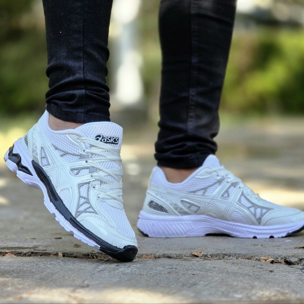 حراااااج کفش کتونی اسپرت مردانه مدل اسیکس مناسب افراد خوش سلیقه رنگ سفید طوسی با ارسال رایگان