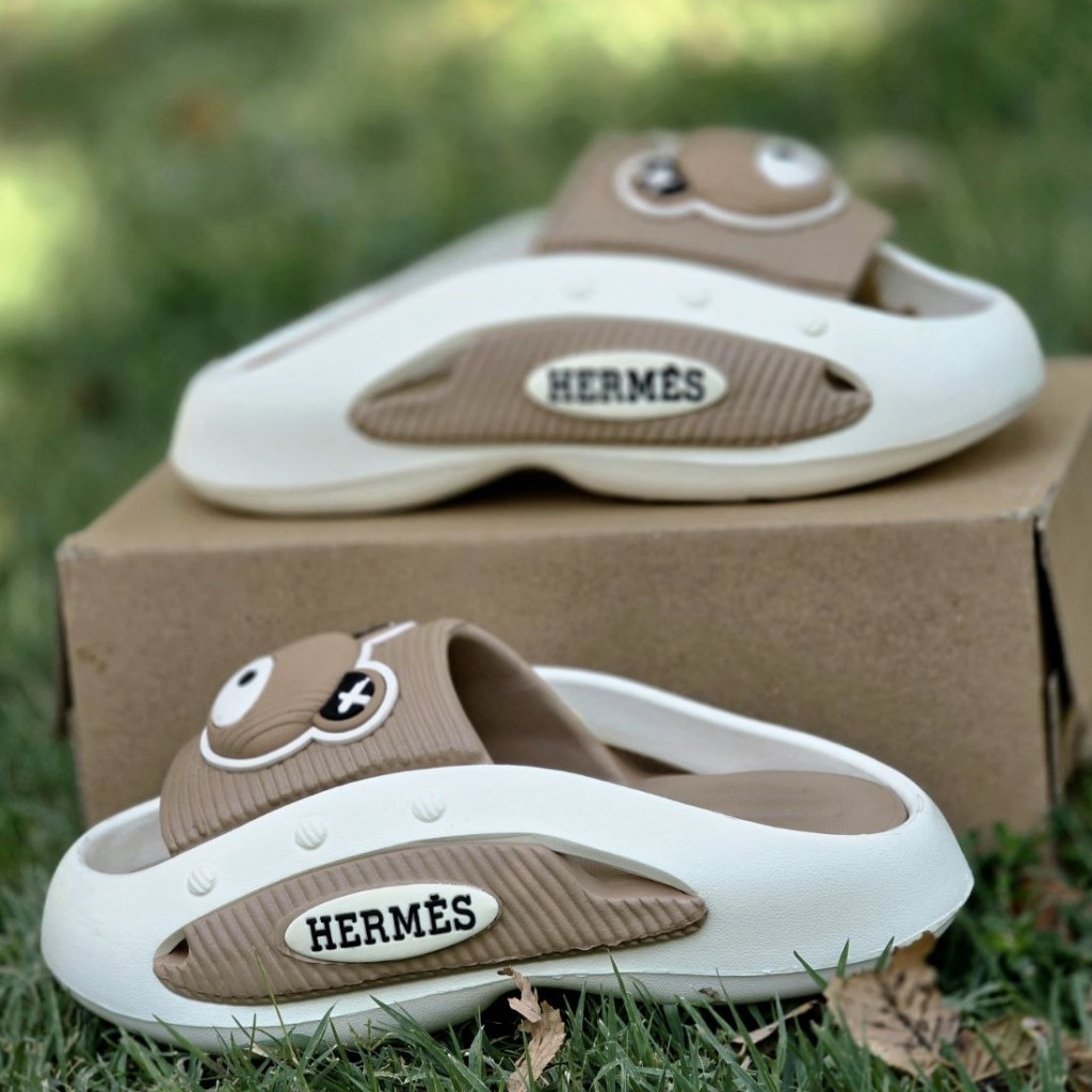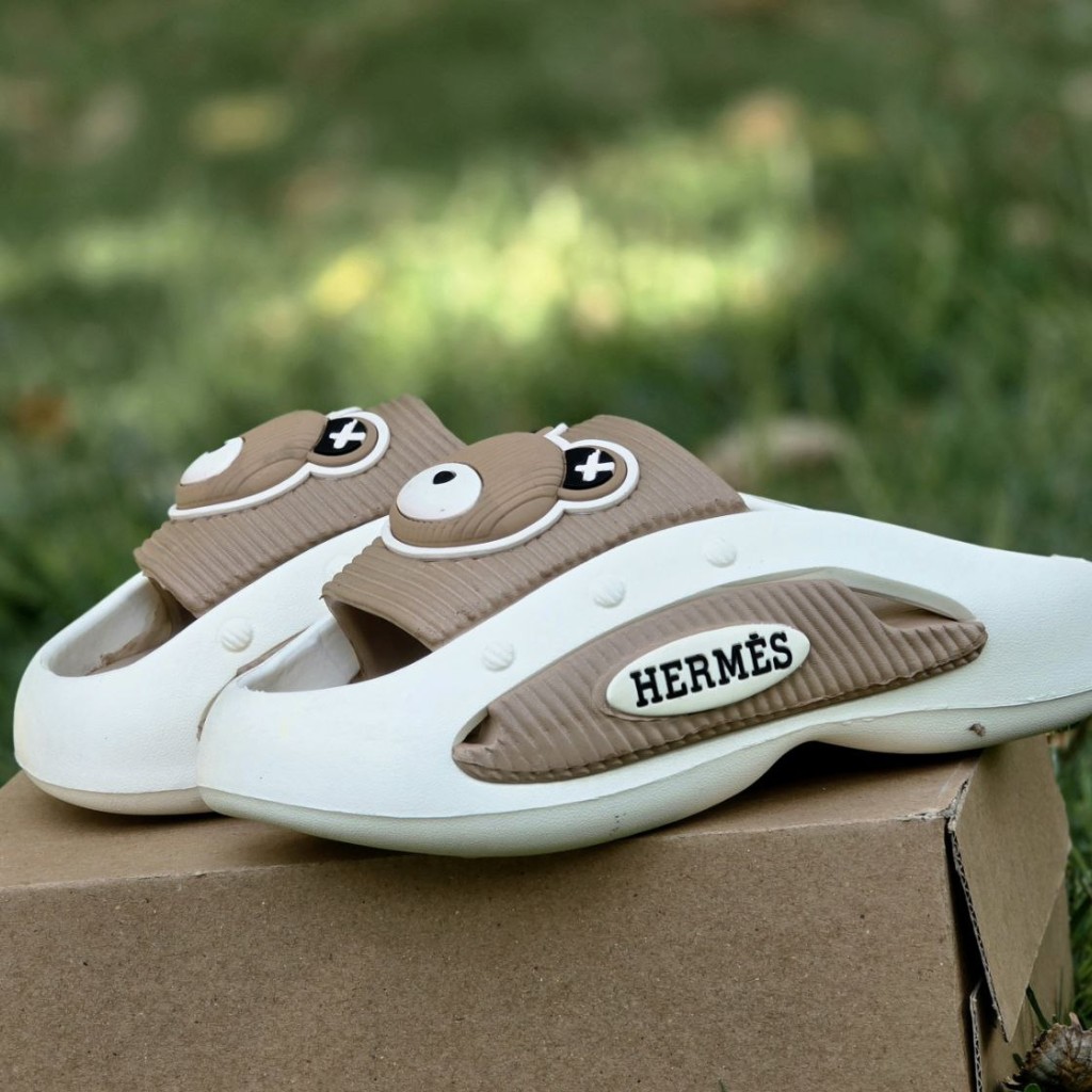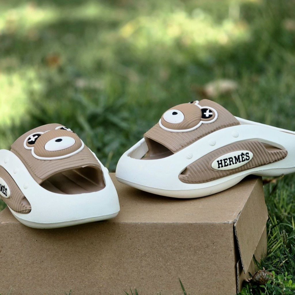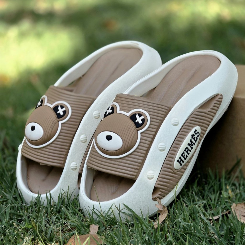 فروش بی نظیر دمپایی صندل دخترانه و زنانه کرومی مدل جسیکا خاص و جدید با طرح خرسی رنگ سفید قهوه ای با ارسال رایگان
