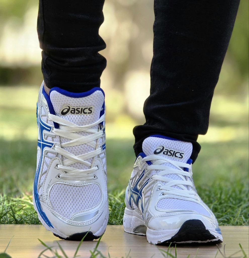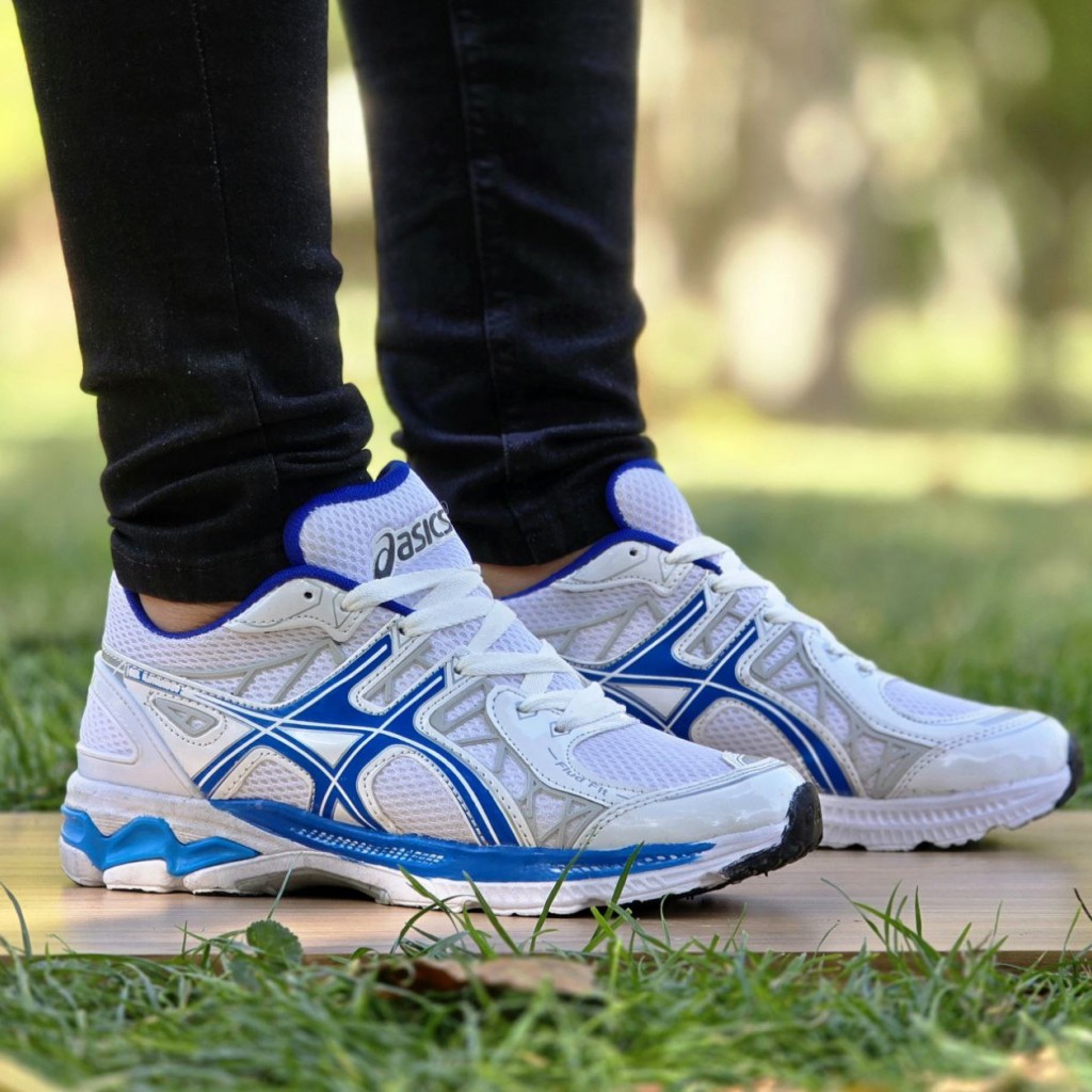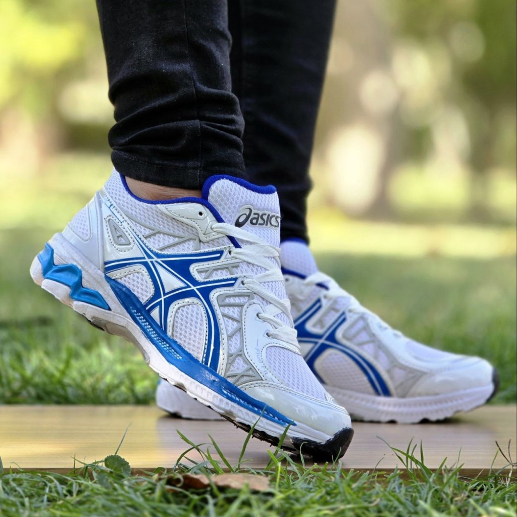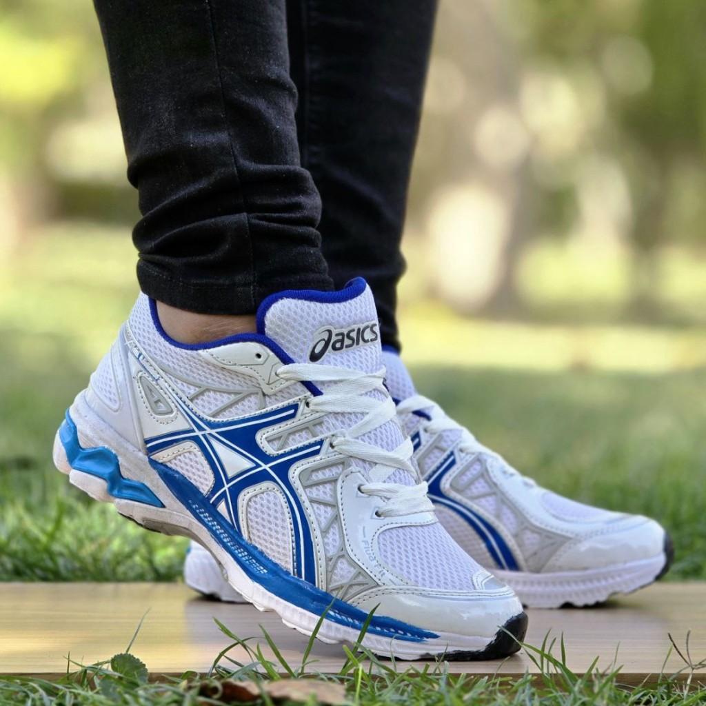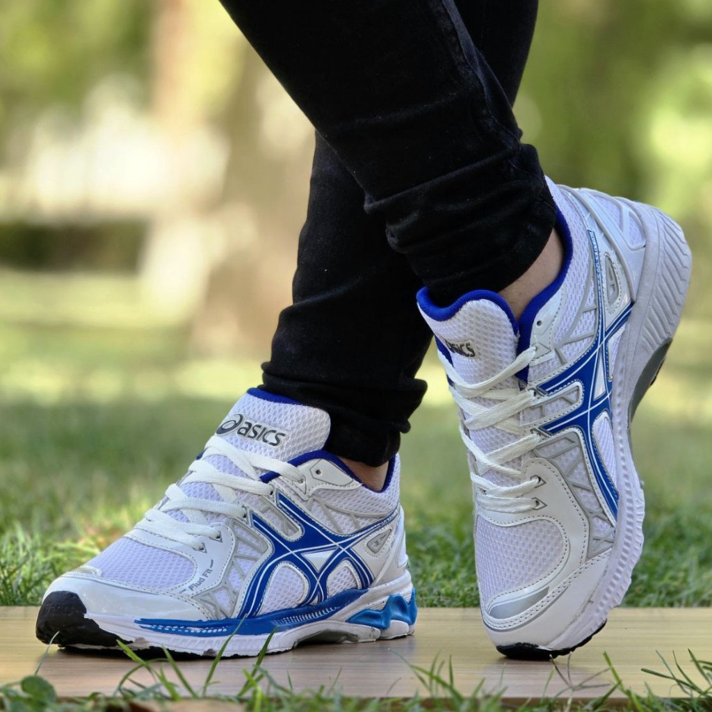 حراج ویژه کفش کتونی اسپرت مردانه مدل اسیکس جدید و به روز رنگ سفید آبی با ارسال رایگان