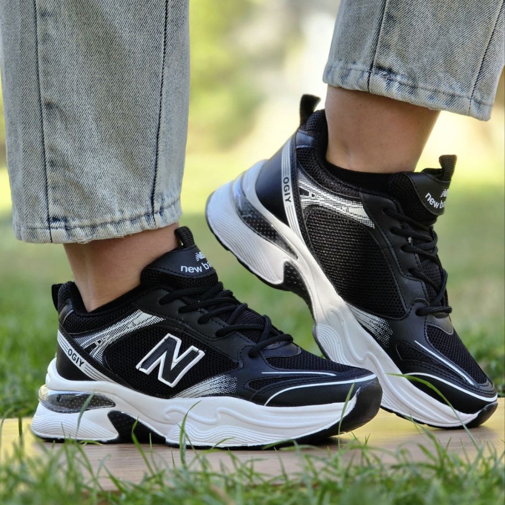 فروش فوق العاده کفش اسپرت دخترانه زنانه مدل نیوبالانس طرح کپسولی شیک و پرفروش رنگ مشکی زیره سفیدبا ارسال رایگان