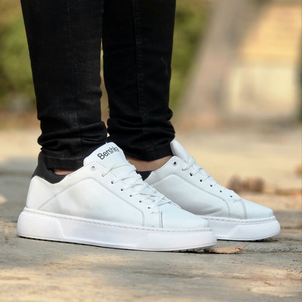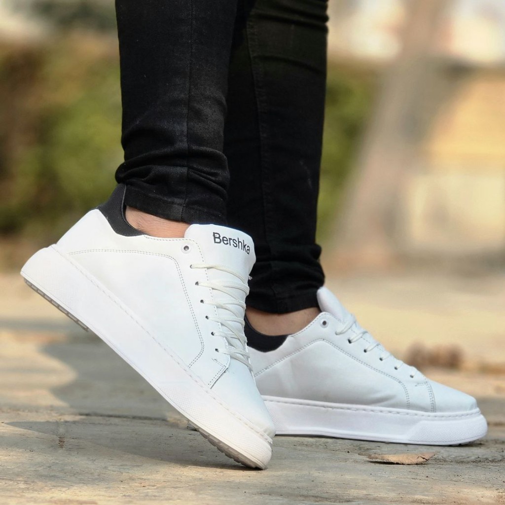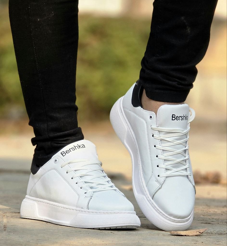 حراج ویژه کفش کتونی اسپرت مردانه پسرانه مدل Bershka خاص و زیبا رنگ سفید مشکی باارسال رایگان