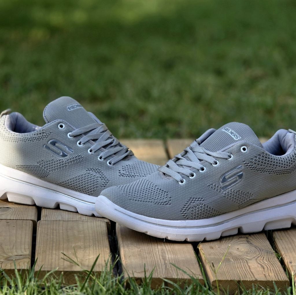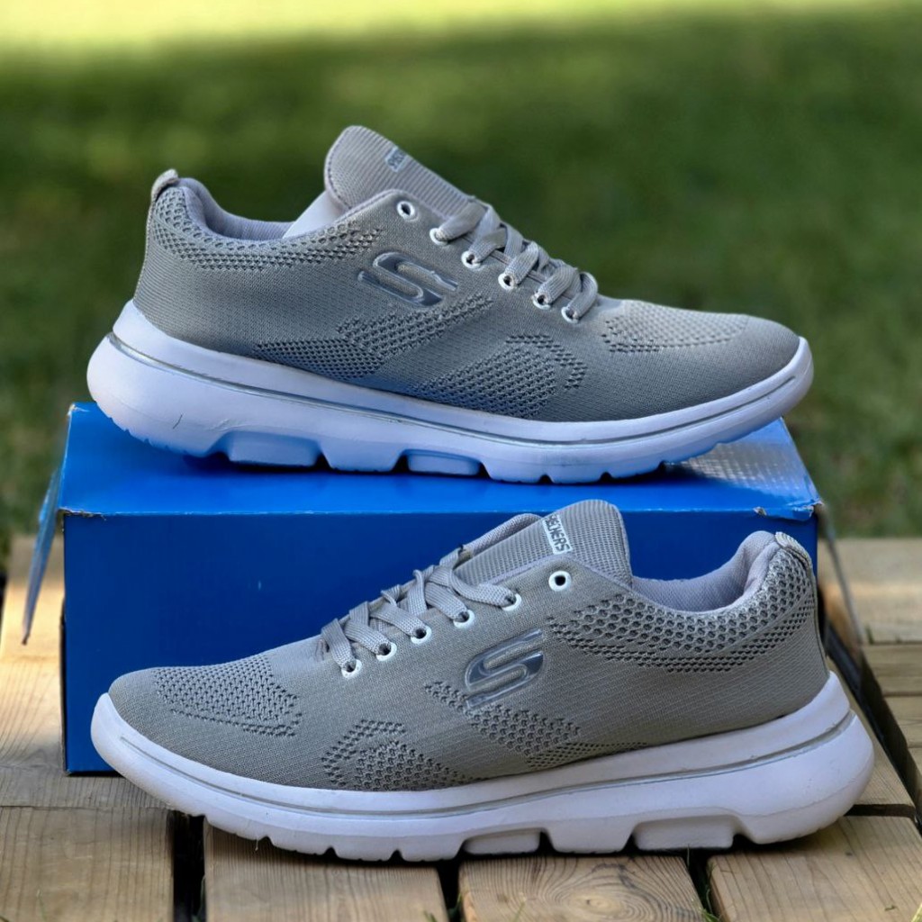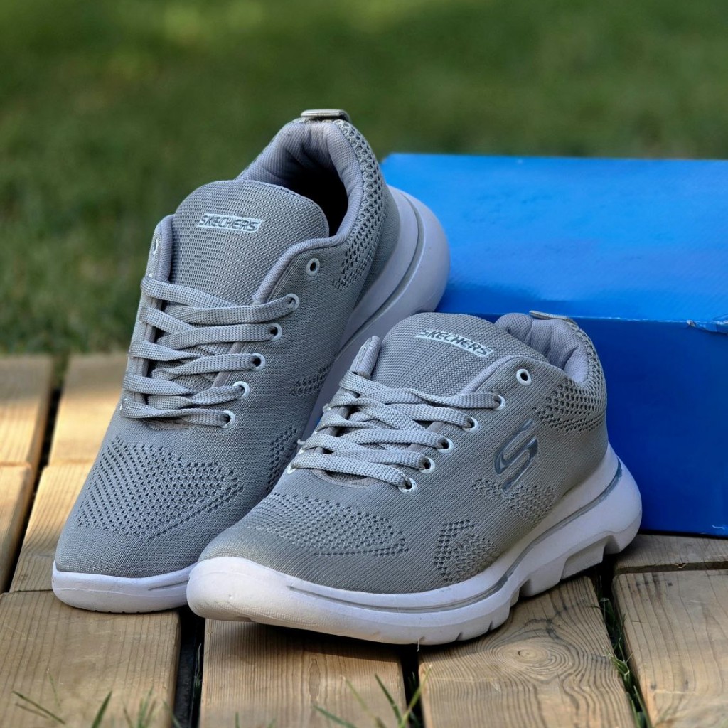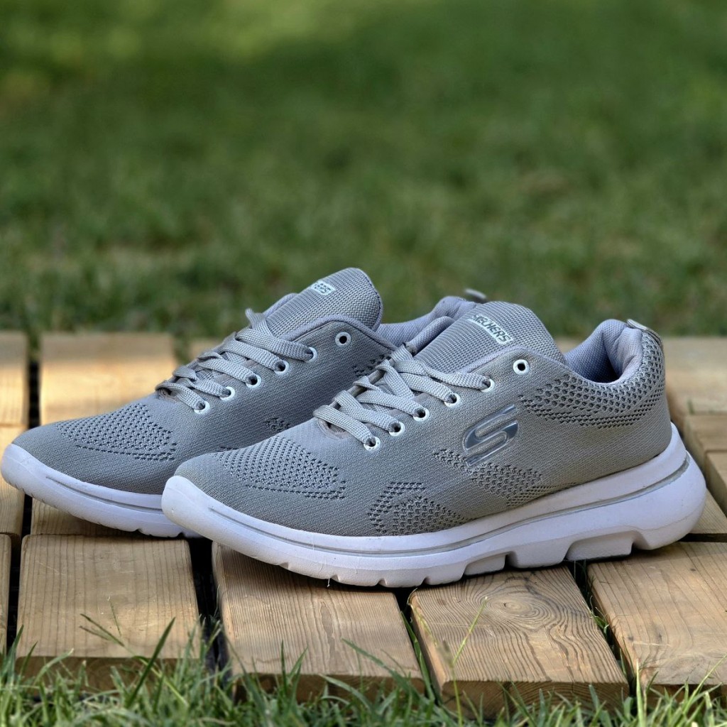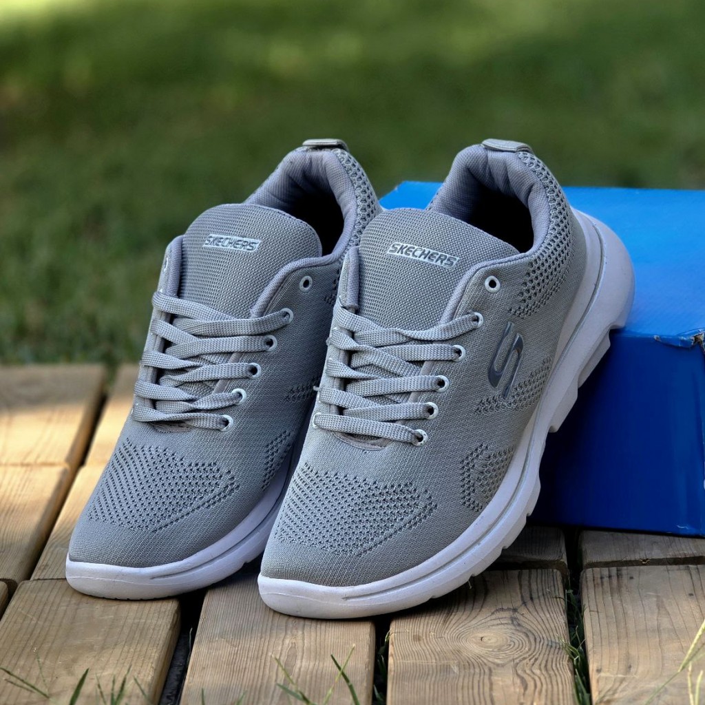 حراج بی نظیر کفش اسپرت کتونی پسرانه مردانه بزرگ پامدل اسکیچرز با کیفیت و خاص رنگ طوسی زیره سفید باارسال رایگان