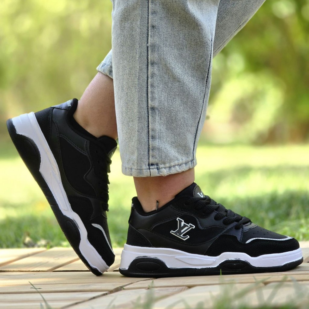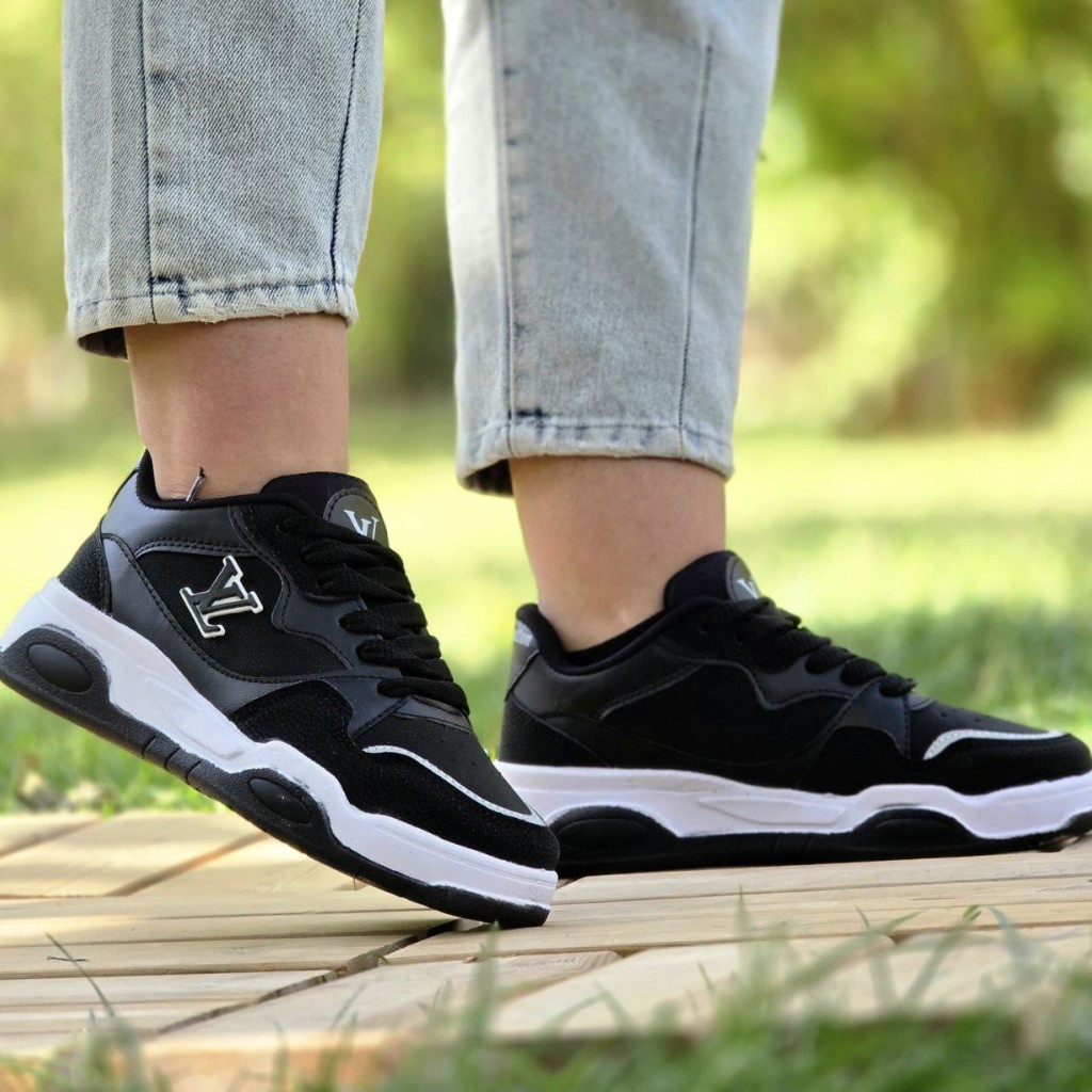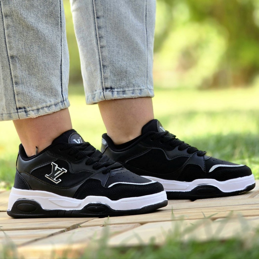 حراج استثنایی کفش کتونی اسپرت زنانه و دخترانه مدل لویی ویلتون رنگ مشکی زیره سفید راحت و مقاوم با ارسال رایگان